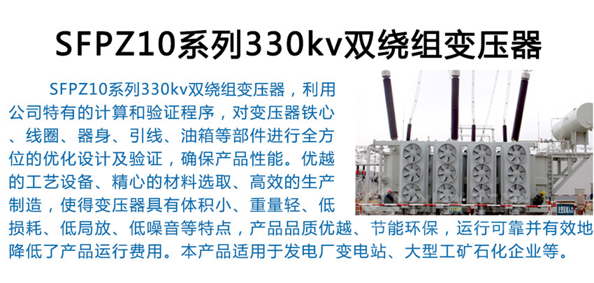 SFPZ10系列330kv雙繞組變壓器適用于發(fā)電廠、變電站、大型工礦石化企業(yè)等。