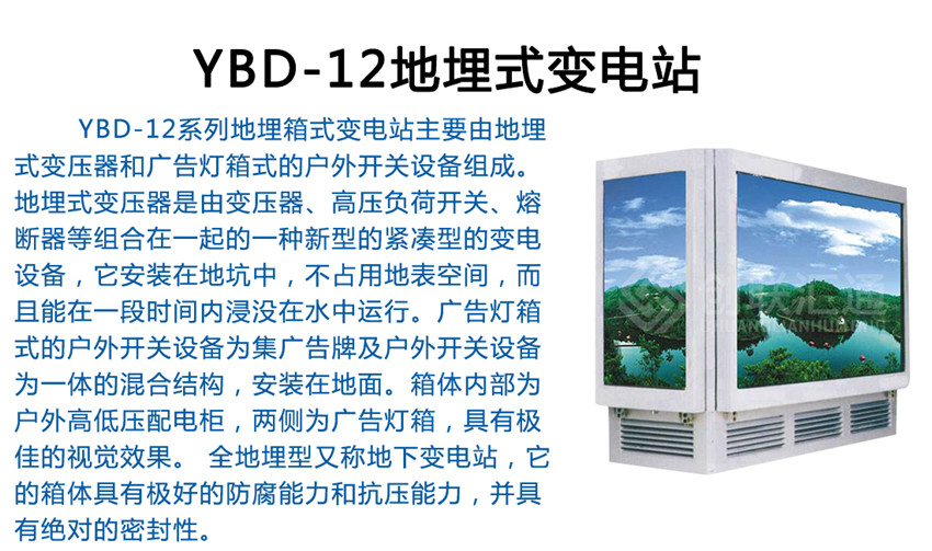 YBD-12系列地埋箱式變電站(簡(jiǎn)稱(chēng)地埋式箱變),是在充分研究和探討現(xiàn)代城市建設(shè)和管理的基礎(chǔ)上,新開(kāi)發(fā)出的新一代箱式變。其主體部分或全部埋入地下,占地很少,甚至不占地,視覺(jué)效果非常好,有效解決了城市用地緊張和城市牛皮癬的矛盾,與周邊環(huán)境和諧統(tǒng)一,備受廣大專(zhuān)家和用戶(hù)的推崇。地埋箱式變電站是指該箱式變電站的成套裝置全部安裝于一個(gè)全密封的箱體內(nèi)部并把整體設(shè)制于地平面以下,它和地面上箱式變電站,內(nèi)部設(shè)備是相同的,同樣是由10KV輸入電壓經(jīng)變壓器降為400/220V配電電壓再送配至使用負(fù)荷點(diǎn),可用于環(huán)網(wǎng)配電系統(tǒng),也可作為放射式電網(wǎng)終端供電的變電站。這種全地埋型又稱(chēng)地下變電站,它的箱體具有極好的防腐能力和抗壓能力,并具有絕對(duì)的密封性。