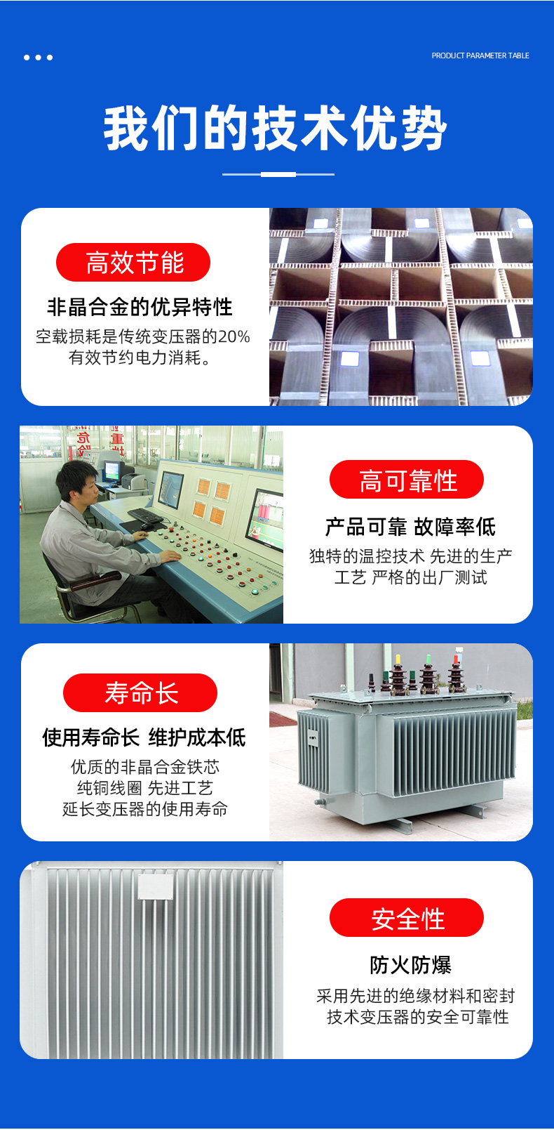 從環(huán)保角度來看,SH21非晶合金油浸式變壓器也是一個更可持續(xù)的選擇。由于其高效率和低能量損耗,SH21變壓器能夠減少對電力資源的需求,從而降低對環(huán)境的影響。此外,非晶合金材料在制造過程中使用的是可回收的材料,有助于減少廢物和減低碳足跡。