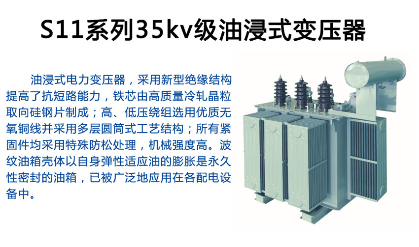 油浸式電力變壓器,采用新型絕緣結(jié)構(gòu),提高了抗短路能力,鐵芯由高質(zhì)量冷軋晶粒取向硅鋼片制成;高、低壓繞組選用優(yōu)質(zhì)無氧銅線并采用多層圓筒式工藝結(jié)構(gòu);所有緊固件均采用特殊防松處理,機械強度高。波紋油箱殼體以自身彈性適應油的膨脹是永久性密封的油箱,已被廣泛地應用在各配電設備中。